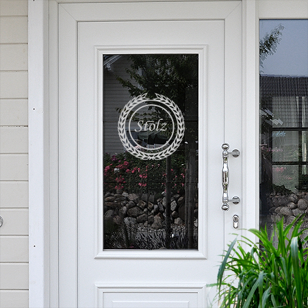 Das sehr schöne filigrane Motiv Lorbeerkranz eignet sich perfekt als Türdekoration. Dieser Aufkleber besteht aus einer ausgeschnittenen Vinylfolie und ist in unterschiedlichen Folienarten erhältlich. Das Motiv wird freigestellt, sodass Sie den Effekt einer geschliffenen, sehr edlen Optik an der Glasfläche erhalten. Es wird also nicht wie bei vielen Herstellern herkömmlich auf einer bedruckten, quadratischen, transparenten Folie geliefert. Somit kann das Dekor individuell auf der Glasfläche verklebt werden. Dieses Türmotiv ist lichtdurchlässig und eignet sich hervorragend zur Dekoration von Türen oder anderen Glasflächen.